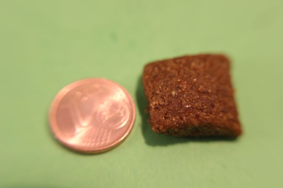 Bei zusätzlicher Gabe von Snacks oder anderen Zusatzprodukten ist die Futtermenge zu reduzieren. Eine Anpassung der Fütterungsmenge kann daher individuell erforderlich sein.