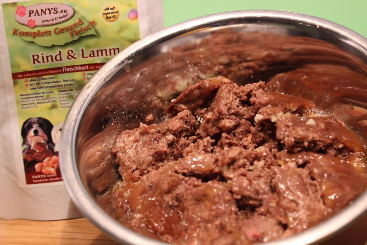 und als Alleinfutter für alle ausgewachsenen Hunde bestens geeignet. Besonders aber für Hunde mit Nahrungsunverträglichkeiten auf z.B. Geflügel oder auch Kohlenhydrate, da nur Rind- und Lammfleisch verwendet wurde und auch die Fleischbrühe vom Fleischanteil nur aus Rind- und Lammfleisch zusammengesetzt ist. Natürlich braucht ein vollwertiges Menü auch Mineralstoffe und Distelöl welches gut für die Haut und das Fell ist.