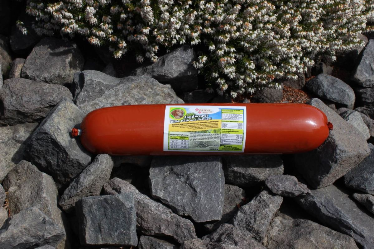 Die Jagdwurst ist für alle ausgewachsenen Hunde super geeignet. Hergestellt wird die Wurst in Deutschland nach Lebensmittelstandard. Selbstverständlich haben wir auch hier auf künstliche Aroma- und Farbstoffe verzichtet und auf eine gluten- und getreidefreie Rezeptur geachtet.