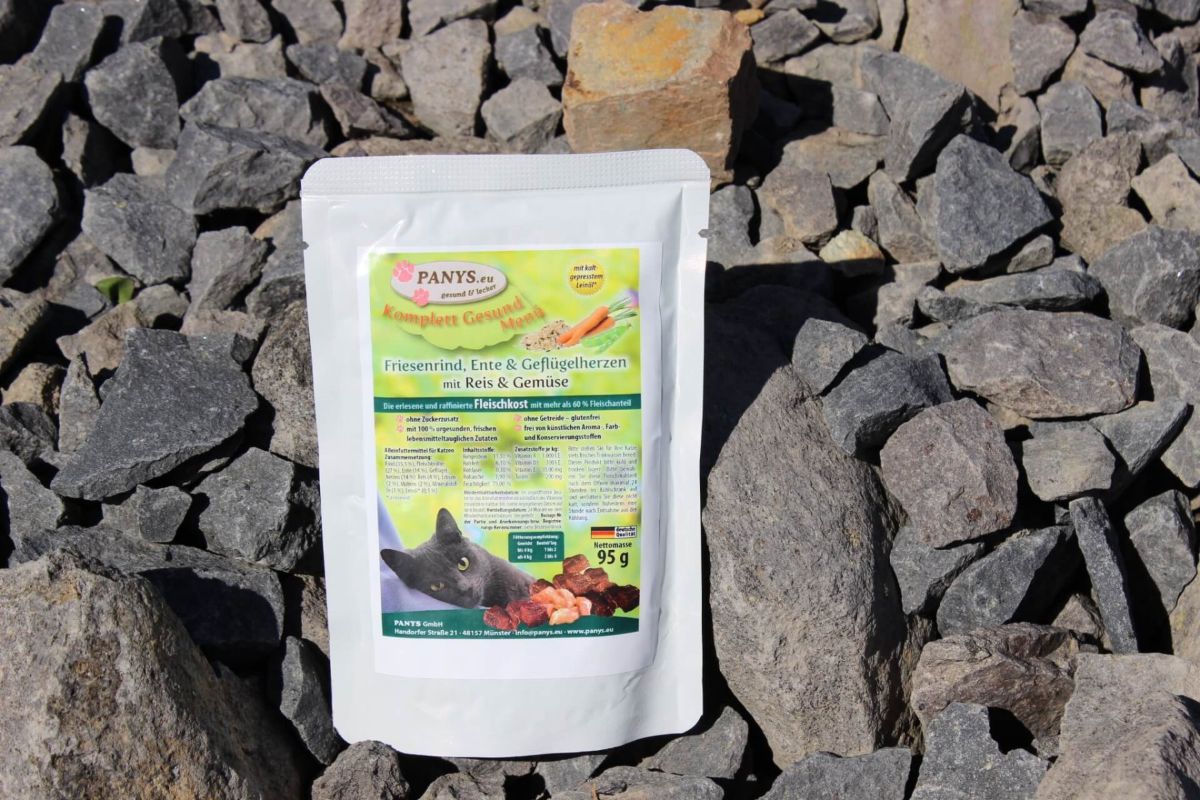 PANYS leckeres Katzen-Menü: Friesenrind, Ente, Geflügelherzen, Reis und Gemüse